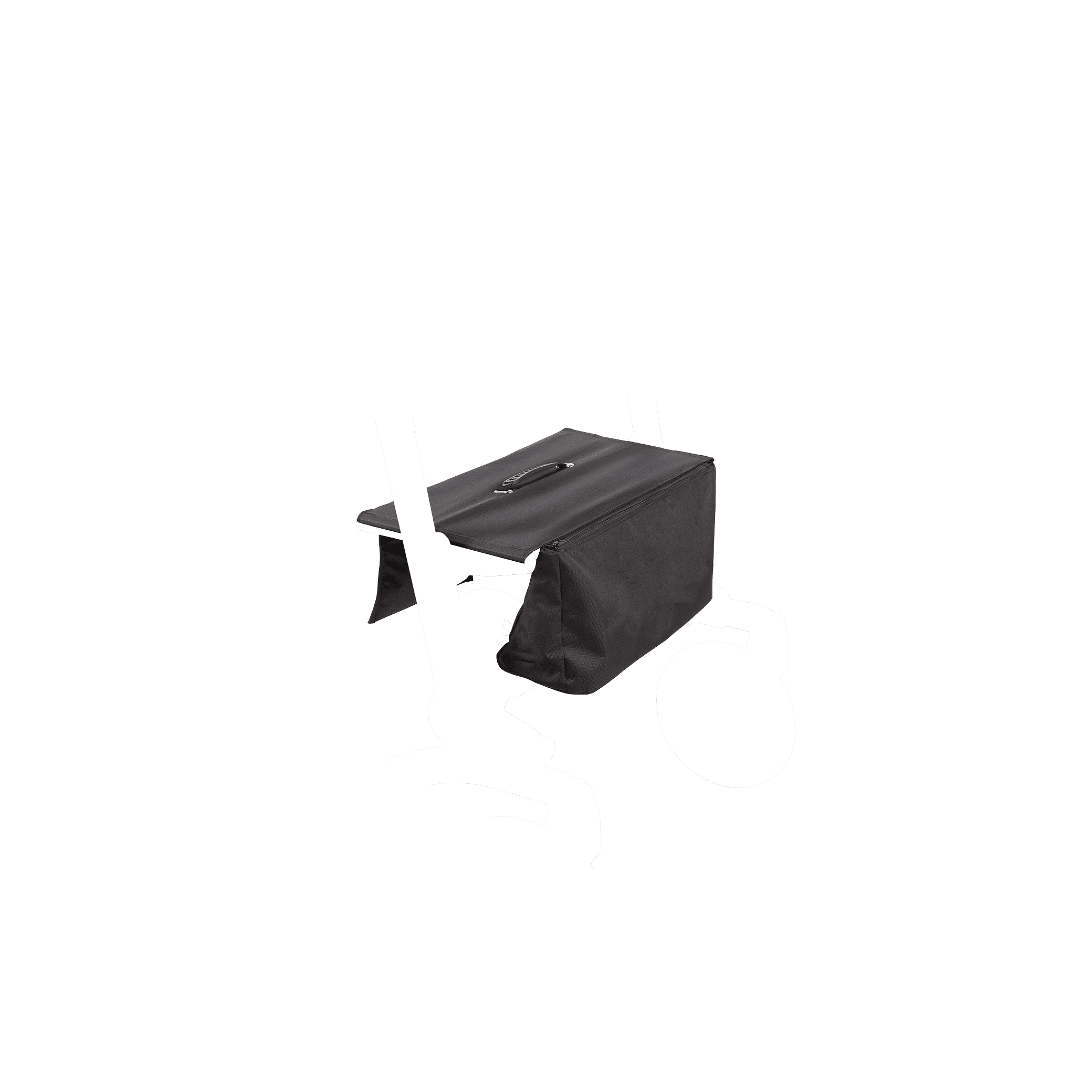 Onder de zitting bevindt zich een grote tas voor het veilig opbergen van spullen en een tasje waarin een kleiner formaat portefeuille past. Deze tassen zijn bevestigd aan de rollator en kunnen worden afgesloten met een rits om diefstal te voorkomen.