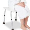 Het bad/douchezitje biedt ondersteuning en veiligheid bij het nemen van een bad of douche. Het badzitje heeft aluminium poten en een kunststof zitting. De zitting heeft een antislip bovenzijde en is voorzien van gaatjes waar het water door weg kan lopen. Antislip doppen voorkomen het wegglijden van het zitje.