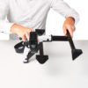 De fietstrainer zorgt voor verbetering van de spierkracht, conditie, bloedcirculatie en coördinatie van het onderlichaam. Alleen voor zittend gebruik, bijvoorbeeld wanneer men tv kijkt of in de tuin zit. De fietstrainer heeft een zwart stalen frame.